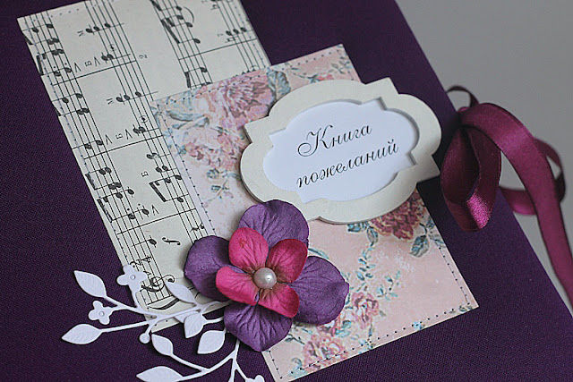 Невеста просила меня дополнить декор свидетельства о браке и книги пожеланий,нотным листом, так как тема музыки очень близка молодым.